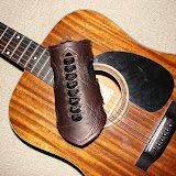 Prototype made for a friend who is the lead guitarist in a band. All hand-tooled leather and hand-stitched fabric. Guitar picks are held into place up the middle spine. Prototype uses leather laces but can be customized to use buckles or snaps.